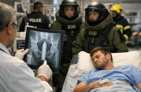 Одделот за итни случаи на болница во Тулуз, Франција, се соочил со една од најбизарните медицински и безбедносни ситуации во својата историја кога дваесет и четиригодишен маж побарал помош поради она што го опишал како екстремна непријатност и силна болка во аналната област. Она што следело ја претворило рутинската вечер