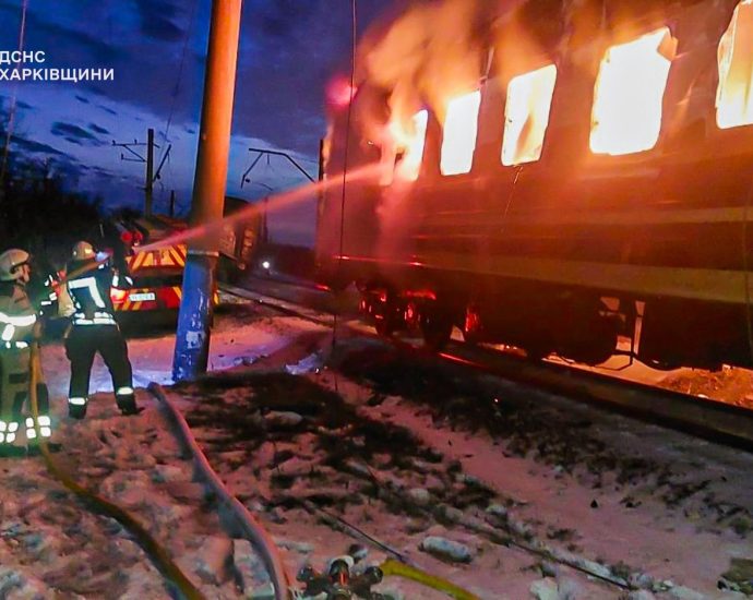Фотографиите и видеата објавени од службите за итни случаи на Украина покажуваат дека барем еден тешко оштетен вагон сè уште гори по нападот.