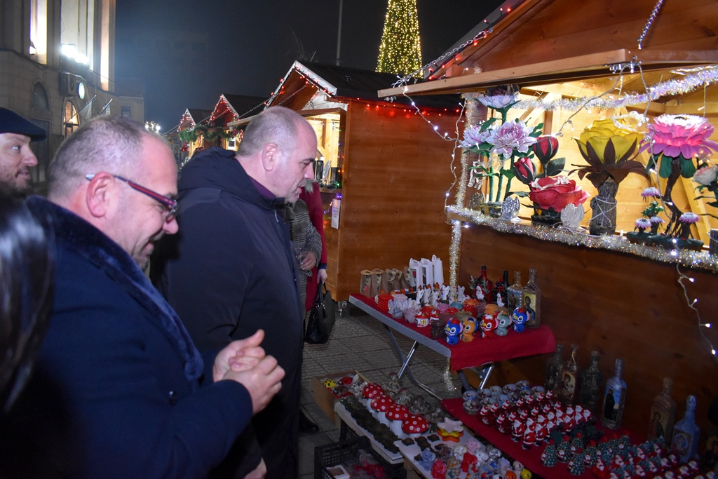 Градоначалникот на Општина Куманово Максим Димитриевски и претседателот на Занаетчиската комора на Македонија Агрон Фазлиу вечерва го посетија новогодишниот базар на градскиот плоштад.