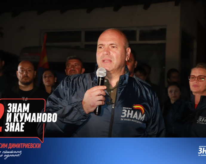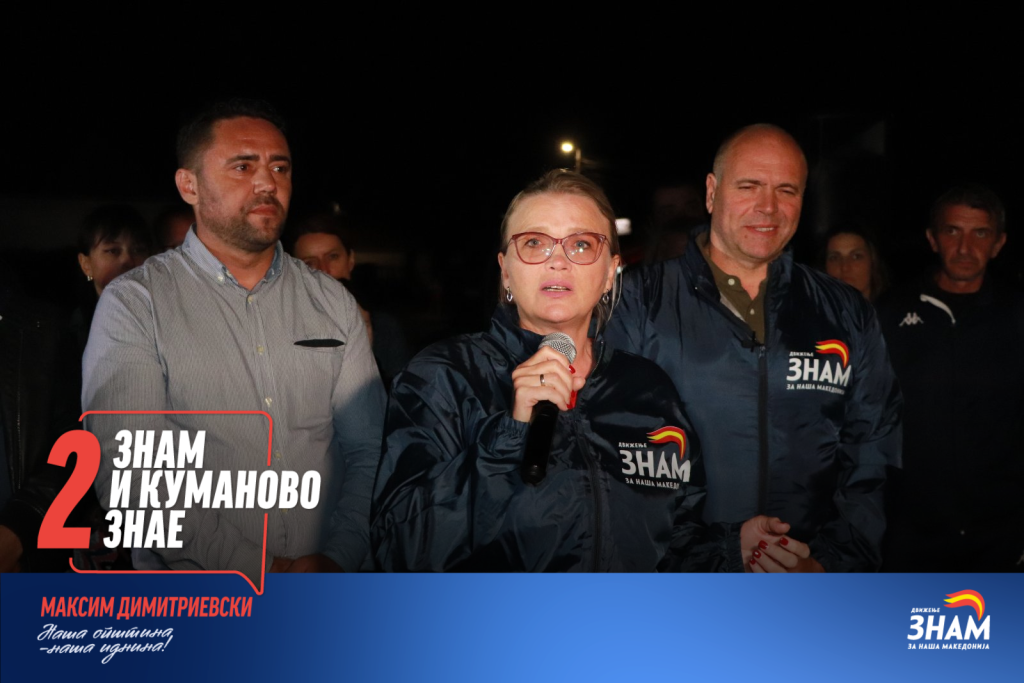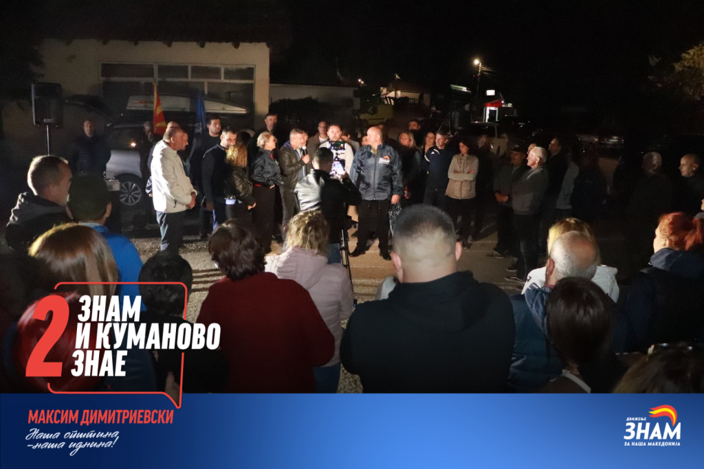 Кандидатот за градоначалник на Куманово и лидер на Движењето ЗНАМ – За наша Македонија, Максим Димитриевски, носителката на советничката листа Ивана Ѓорѓиевска, неколку други кандидати за советници и пратеникот од ЗНАМ Даниел Стојчевски, синоќа одржаа собир со граѓани во населбата Вера Которка. На настанот отворено разговараа за приоритетните проекти во населбата, но и генерално во општината, кои треба да придонесат за дополнително подобрување на квалитот за живот на Кумановци.