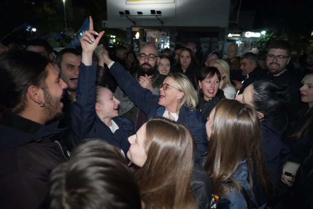 Кандидатот за градоначалник на Движењето ЗНАМ – За наша Македонија во Куманово, Максим Димитриевски вечерва на градскиот плоштад прослави победа во првиот круг.