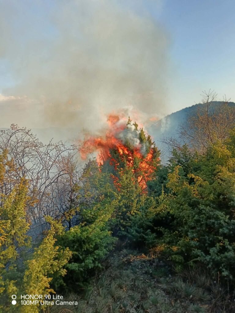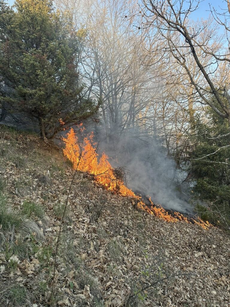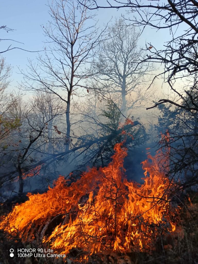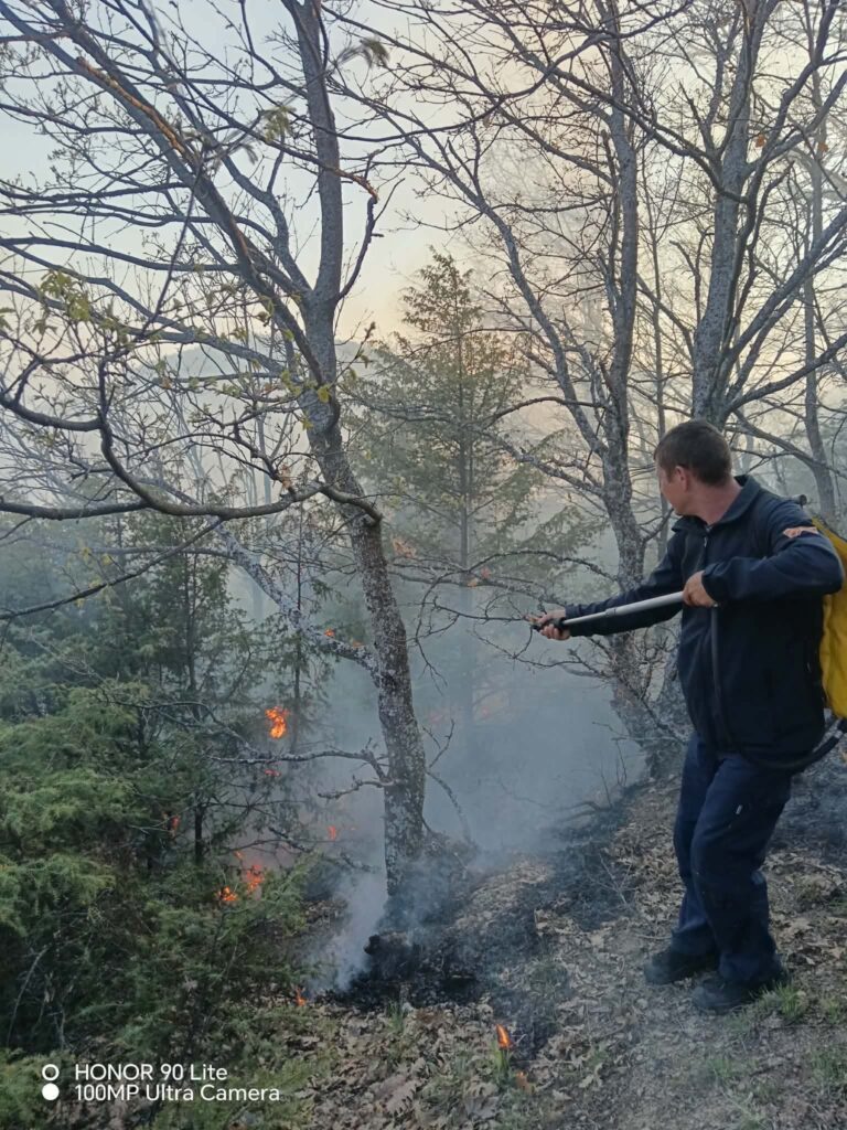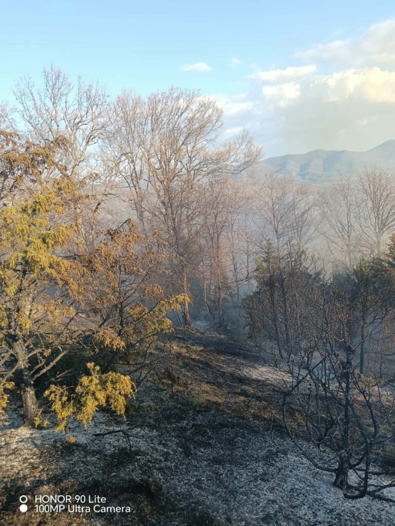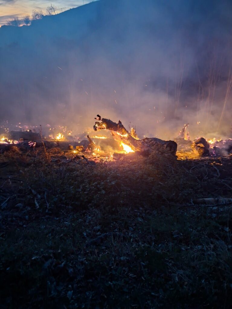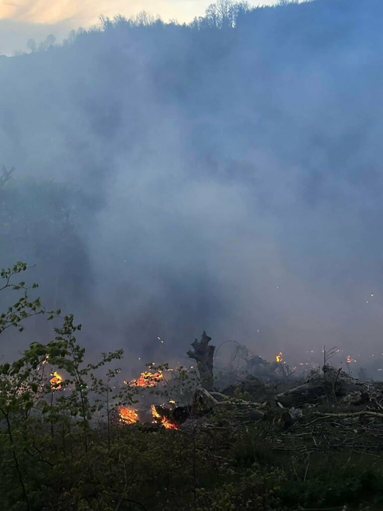 Како што информираат од Регионалниот центар за управување со кризи, пожарот избувнал вчера околу 13 часот при што гореле повеќе суви дрва од бука, смрека и други, кои биле претходно исечени.