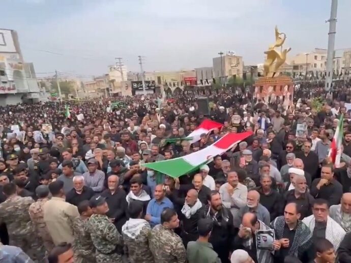 Според извештаите од иранската државна телевизија ИРИБ, големи толпи ги исполнија улиците на центарот на Минаб утрово, собирајќи се пред сцената на главниот плоштад.