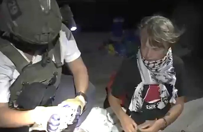 Откако израелската морнарица ги запре и опколи бродовите на флотилата, беше објавена нова слика на која член на израелските безбедносни сили ја претресува Грета Тунберг.