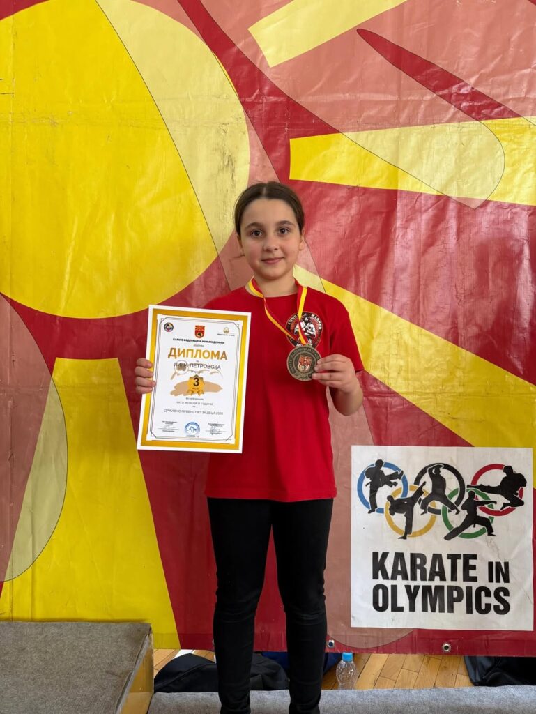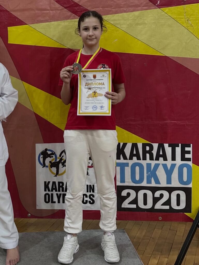 Во категории каде што настапија и до 19 натпреварувачи, Лина Петковска го освои третото место во дисциплината кати, во конкуренција од 19 учеснички, додека Галена Димитриевска исто така се закити со бронза, во категорија со 13 натпреварувачи.
