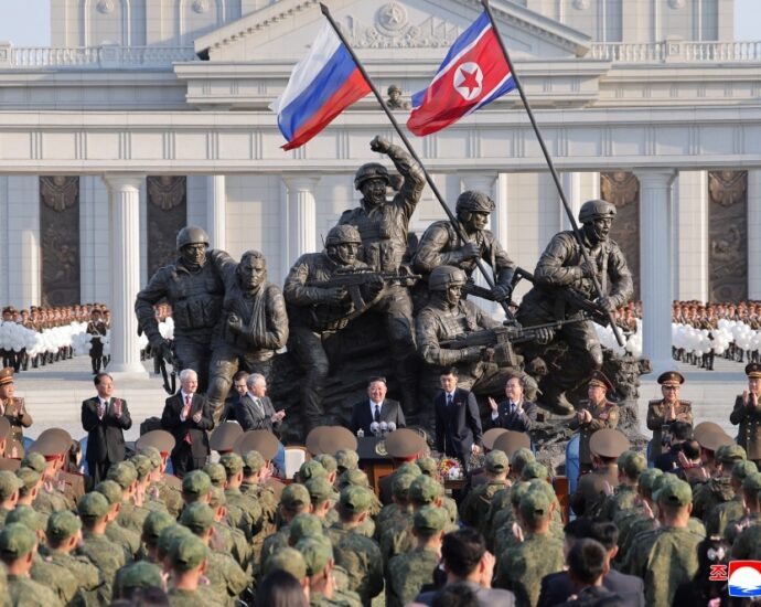 Севернокорејскиот лидер Ким Џонг-ун и рускиот министер за одбрана Андреј Белоусов открија споменик во Пјонгјанг за Севернокорејците кои загинаа борејќи се во руско-украинската војна, јавува денеска Би-би-си.