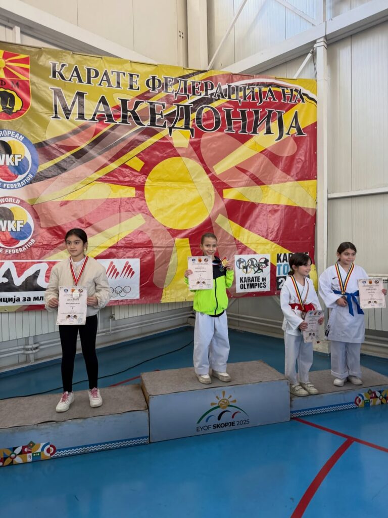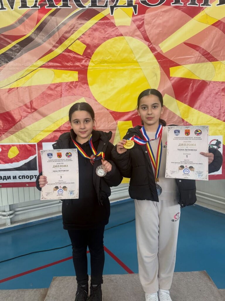 Златни медали освоија Теона Петковска во категоријата ката за 2015 годиште и Лазар Петкутински во ката за 2015 годиште.