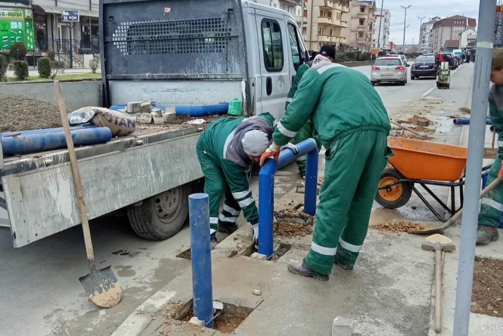 Екипи на Јавното претпријатие „Чистота и зеленило“ поставија метални столпчиња на дел од булеварот „Трета македонска ударна бригада“ во Куманово.
