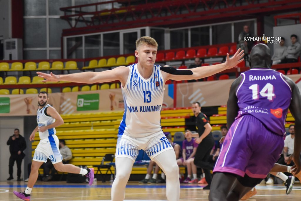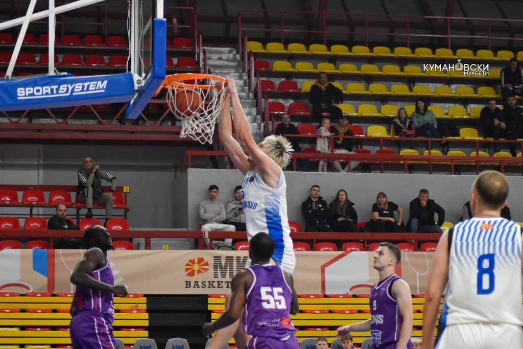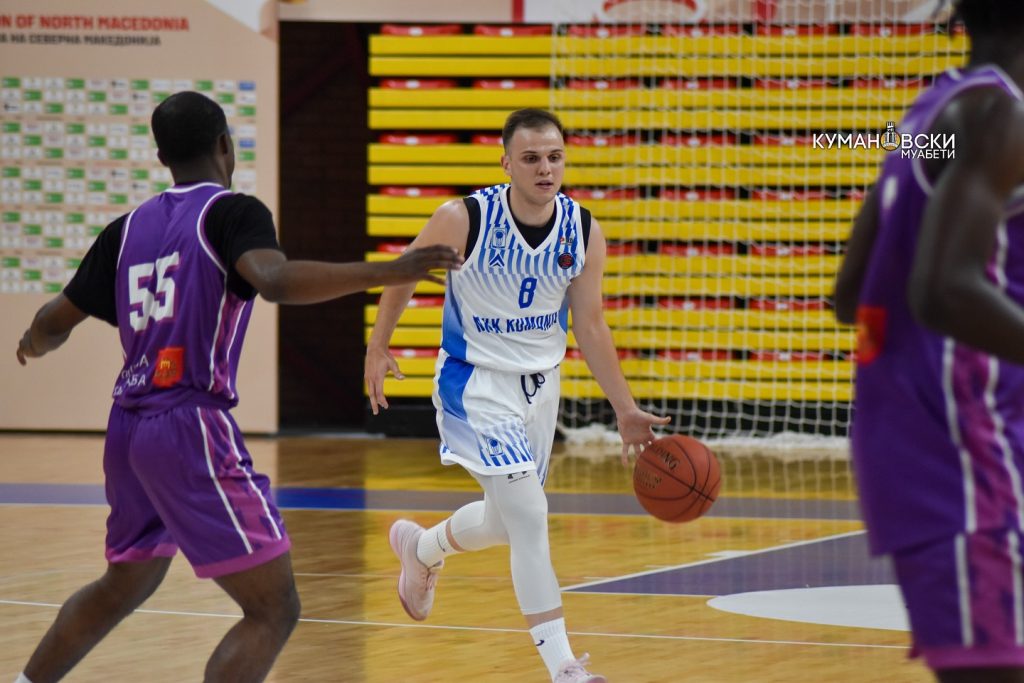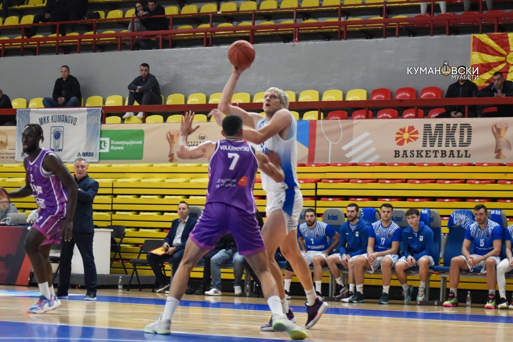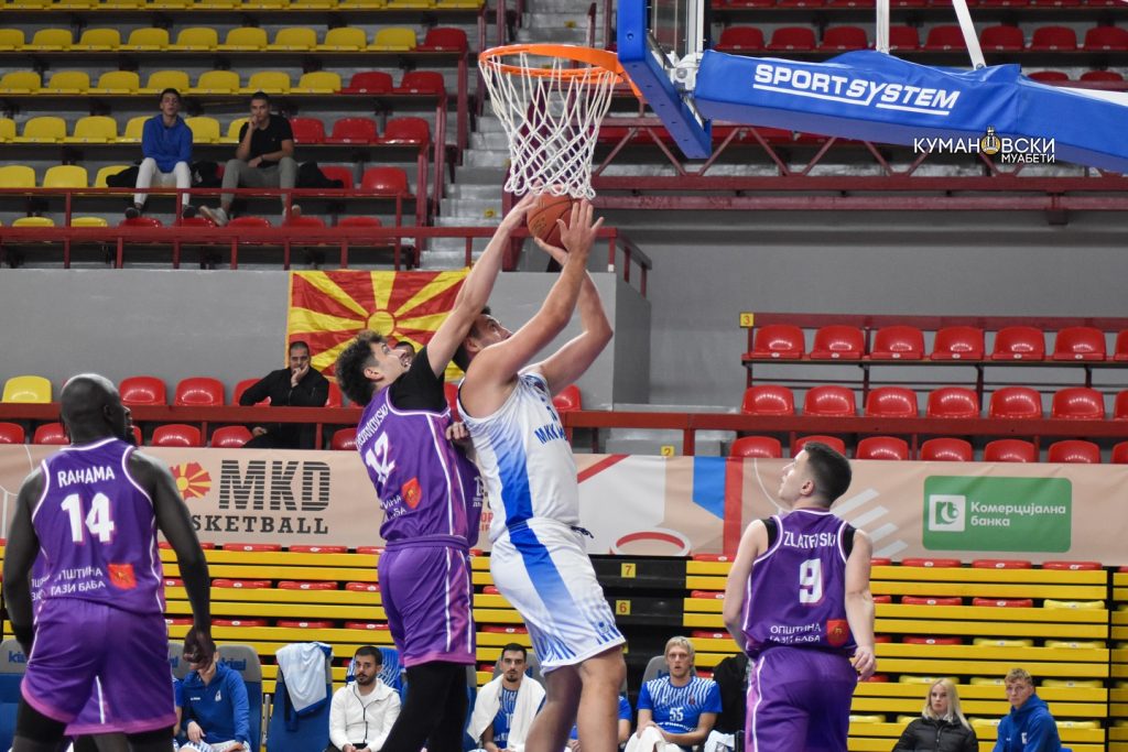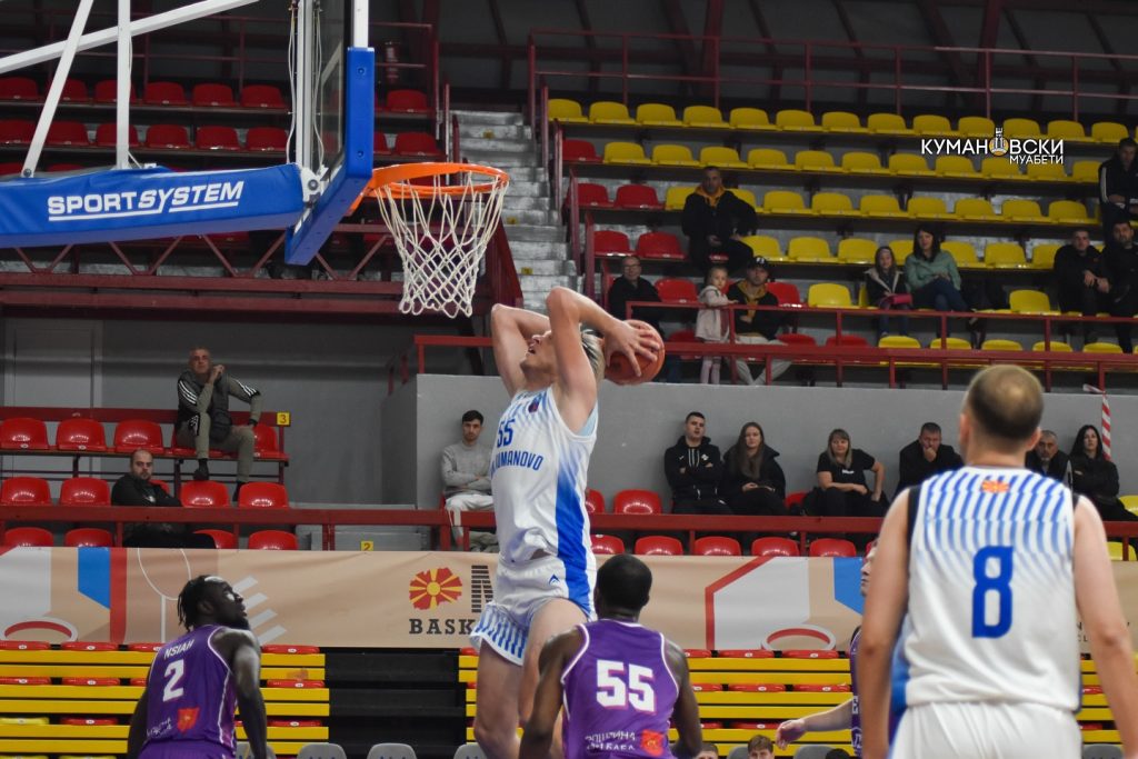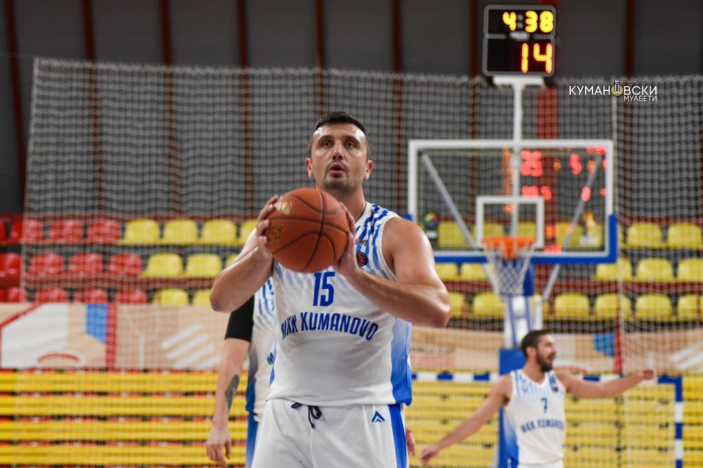 Мошне ефикасно прво полувреме одиграа домашните кошаркаари. Односно 20.минути во кои МКК Куманово обезбеди висока предност. Ако по десет минути игра, разликата беше само пет поени (24:19), до крајот на тој прв дел „сино-белите“„ се одвоија за многу повисоки (53:29).
