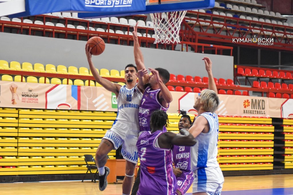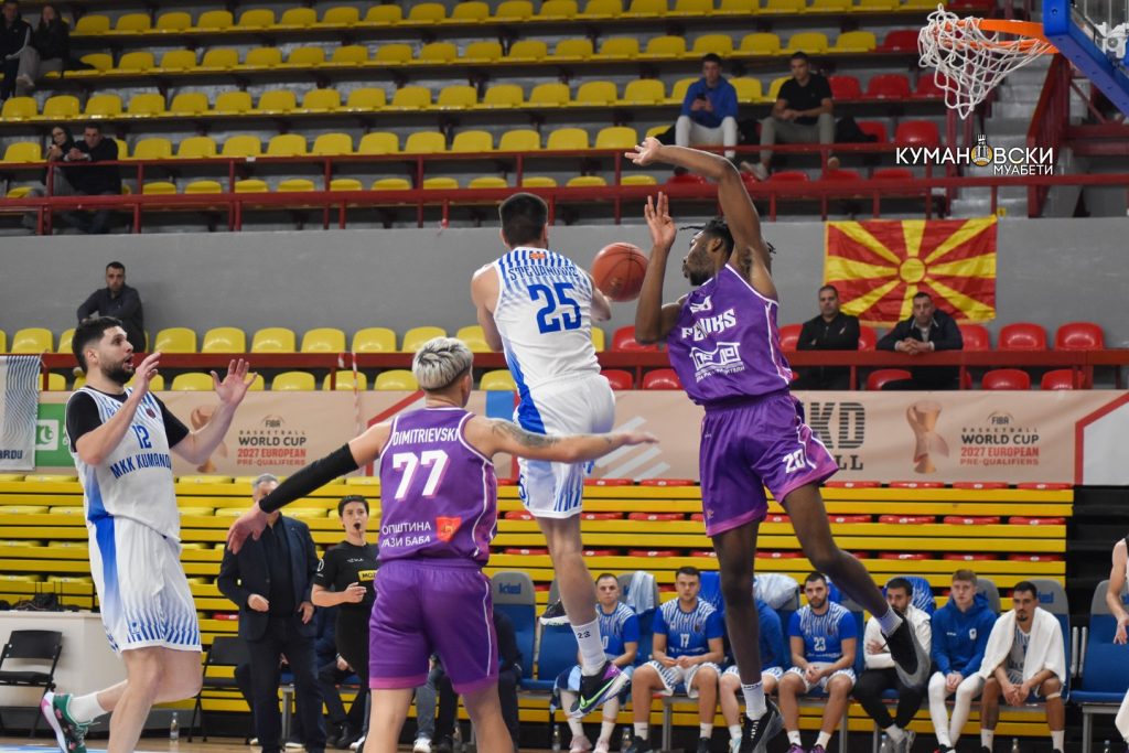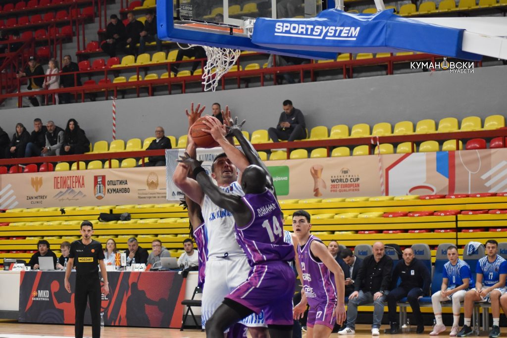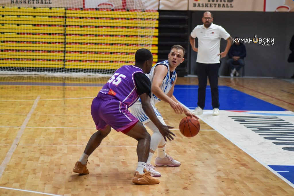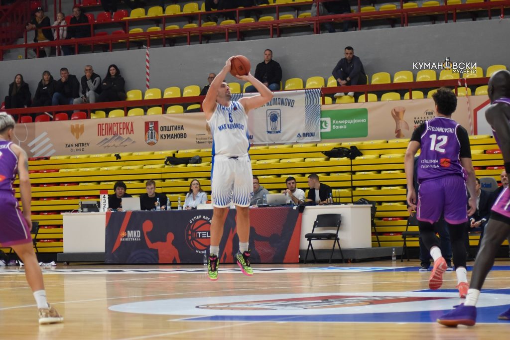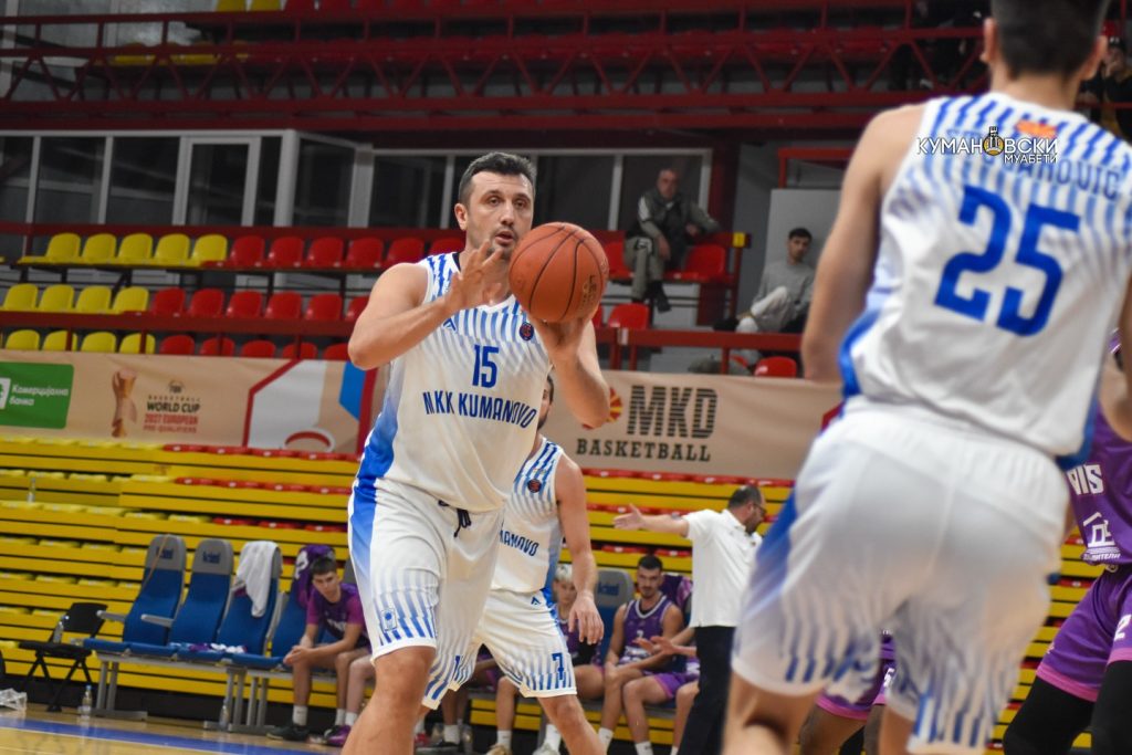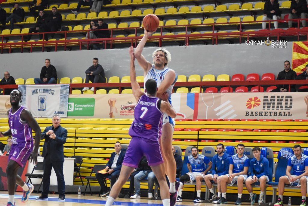 Мошне ефикасно прво полувреме одиграа домашните кошаркаари. Односно 20.минути во кои МКК Куманово обезбеди висока предност. Ако по десет минути игра, разликата беше само пет поени (24:19), до крајот на тој прв дел „сино-белите“„ се одвоија за многу повисоки (53:29).