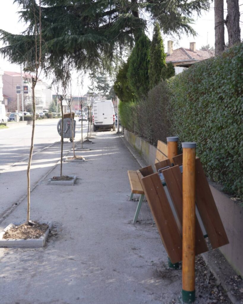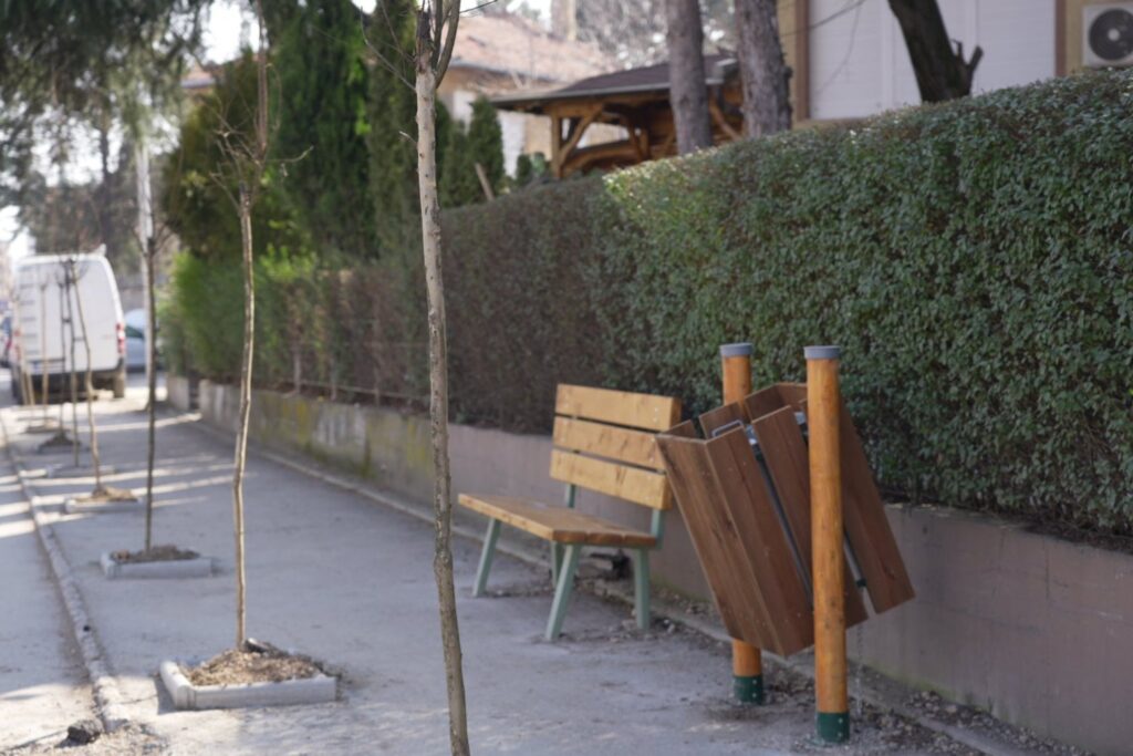Како дел од проектот, исто така поставена е и урбана опрема, клупи и корпи за отпадоци.