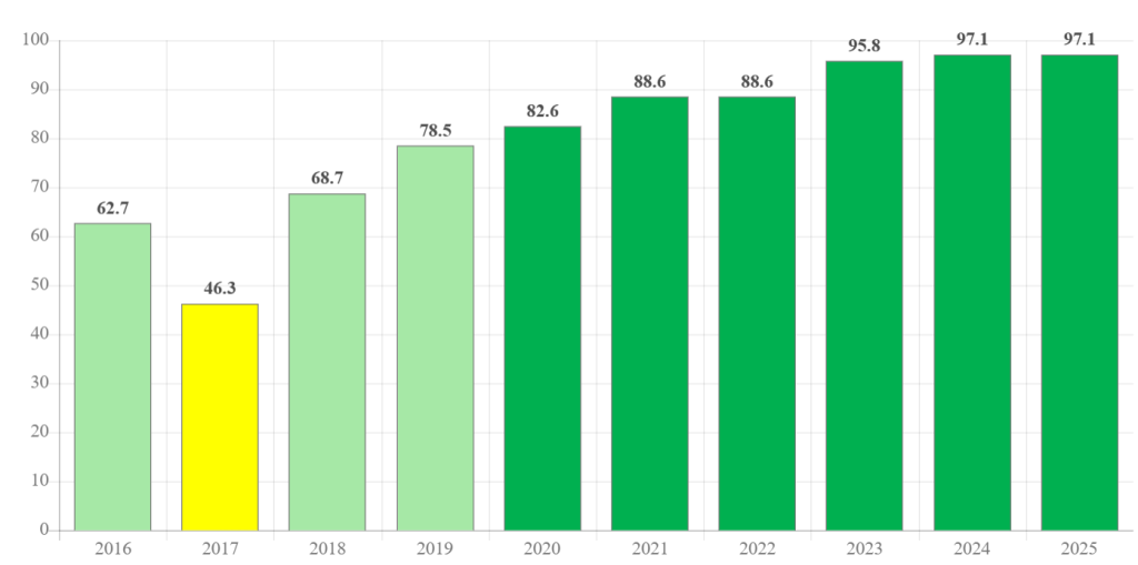 – Активната транспарентност на Општина Куманово во 2025 година изнесува 97,1 % (од можни 100 %) со што општината се наоѓа во групата институции со ’многу добра‘ активна транспарентност (исполнување на обврските од 80 % до 100 %). Со овие бодови, општината се наоѓа на делба на седмата позиција од вкупно 102 рангирани институции, велат креаторите на истражувањето.