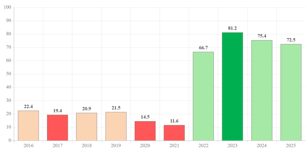 » Просечната активна транспарентност на министерствата, на Владата и на општините за 2025 година изнесува 80 % (од максимално можни 100 %), исто колку што изнесуваше и минатата година.