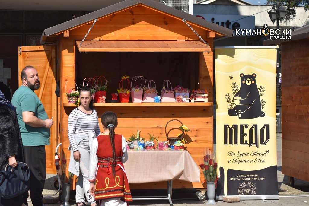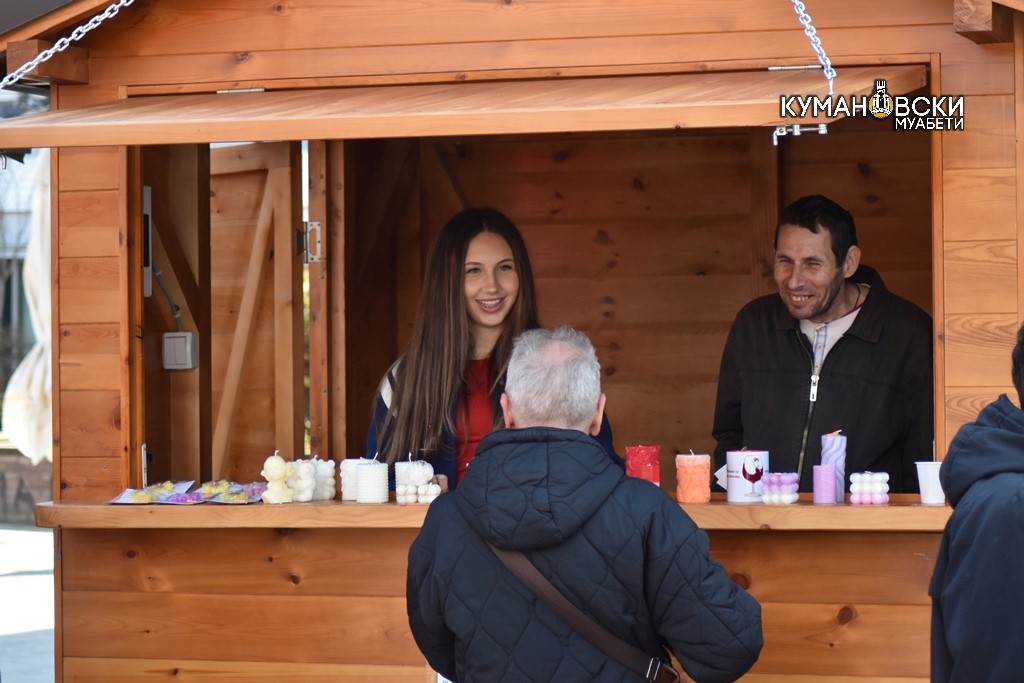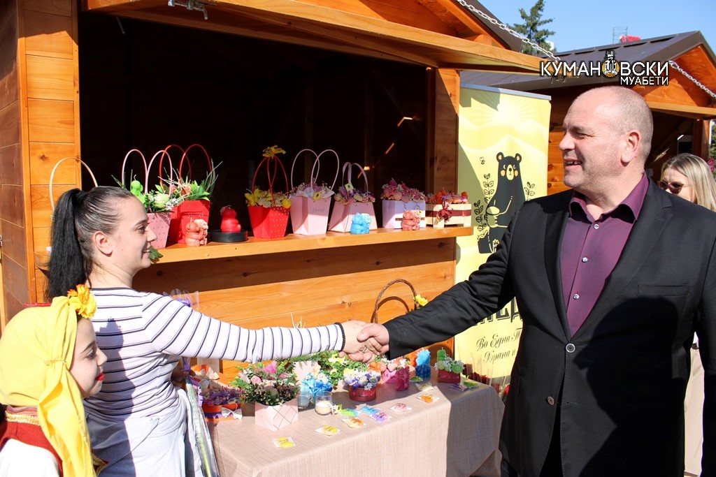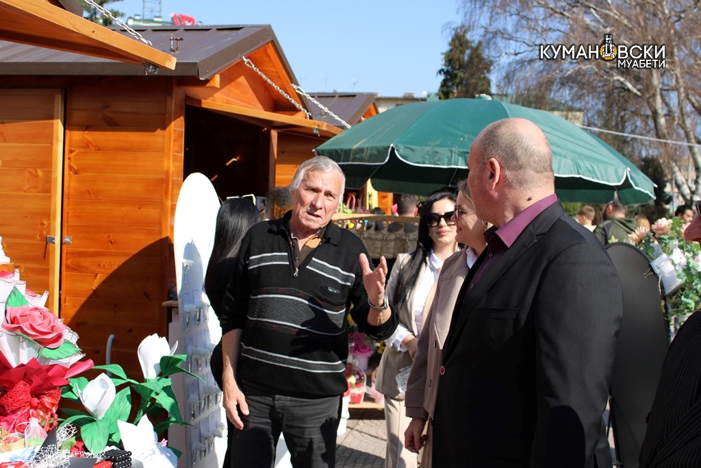 – Многу ми е мило што  тука на градскиот плоштад ќе имаме ваков проект финансиски поддржан од Општина Куманово во пресрет на Меѓународниот ден на жената. Ќе имаме до 10 март организирано базар на којшто ќе се продаваат различни производи. Ќе се понудат на сите наши граѓани претежно ракотворби, изјави Димитриевски.