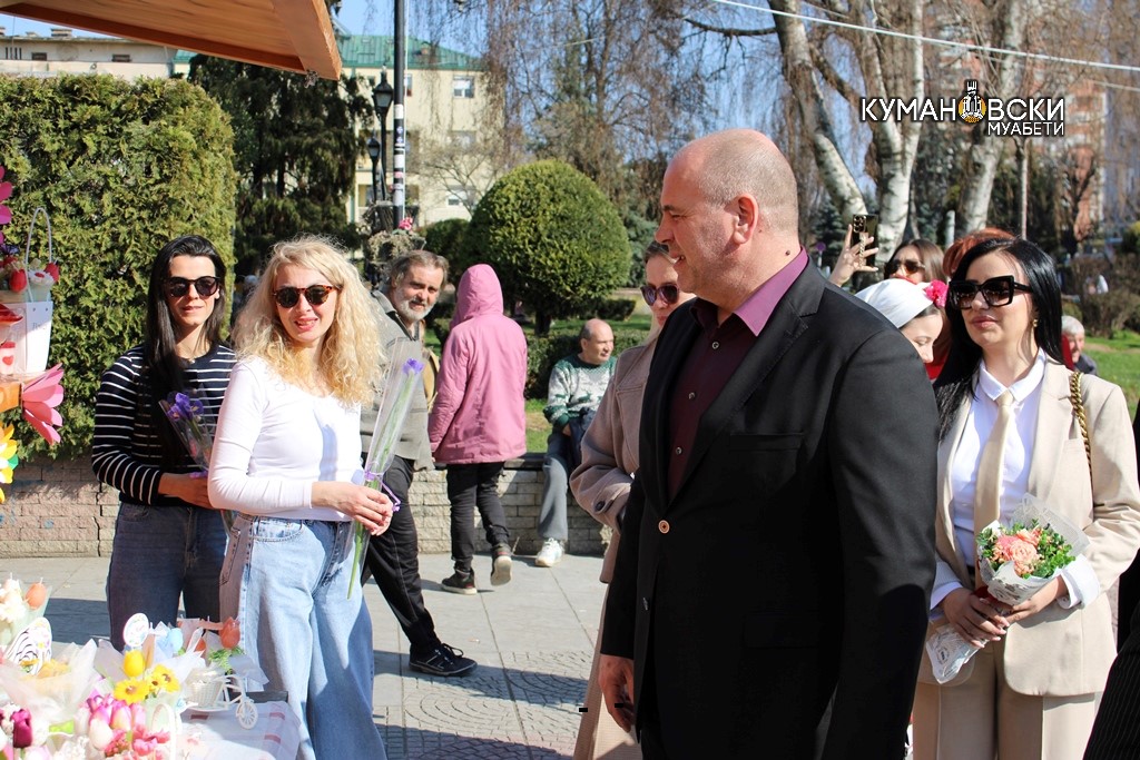 Првиот човек на градот со претставници од локалната самоуправа и Занаетчиската комора денеска подари и каранфили на жените на градскиот плоштад, на дел од наставниот кадар во градот и женските полициски службеници при Секторот за внатрешни работи Куманово.