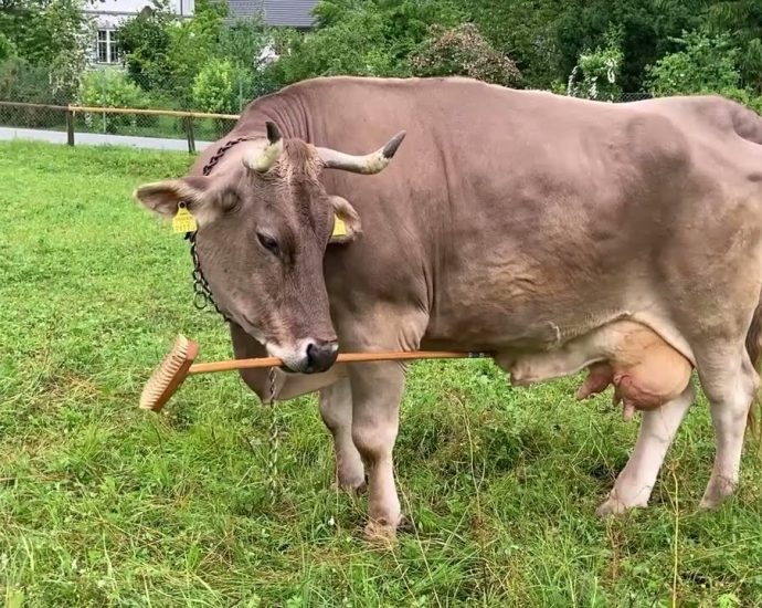 Паметната крава што ги збуни научниците: Вероника посегнува по четката и сама се чешка (ВИДЕО)