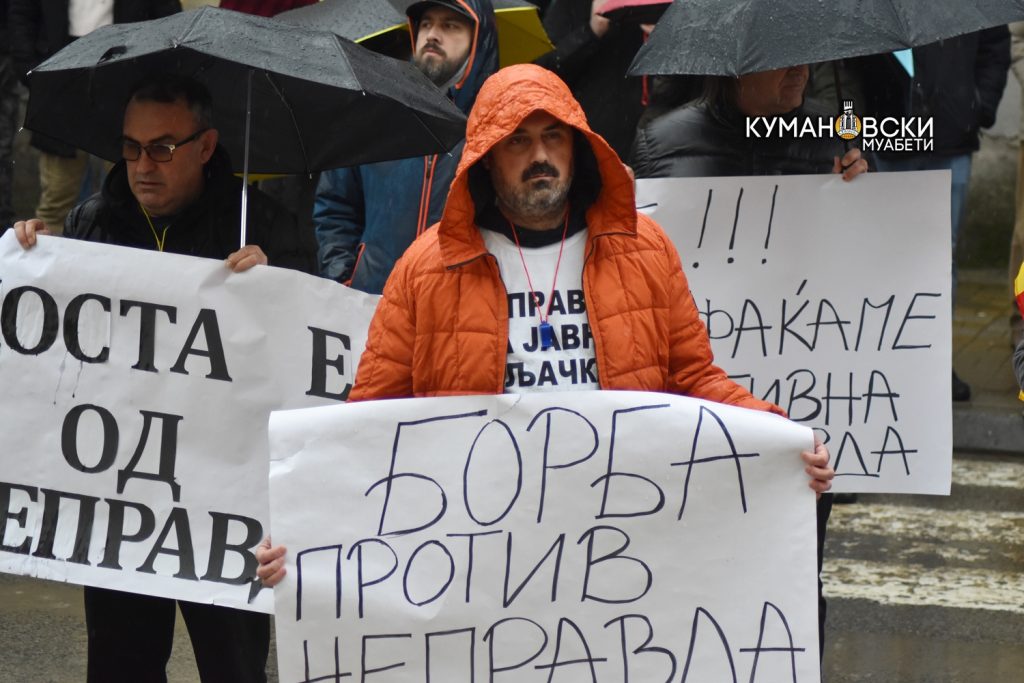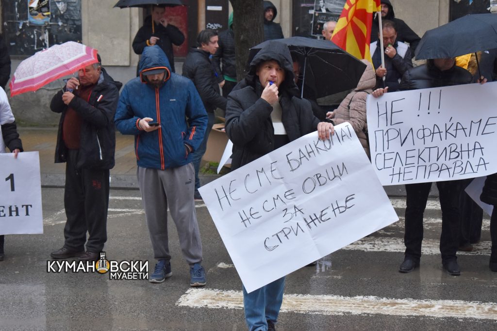 Печалбарите од Ирак и Авганистна денеска протестираа пред Општина Куманово повторувајќи ги своите барања да не бидат двојно оданочувани за нивните плати од страна на Управата за јавни приходи.