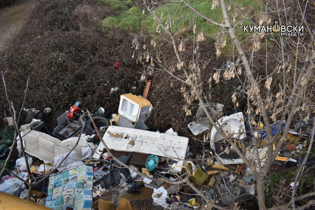 Екипи на Јавното претпријатие „Чистота и зеленило“ денеска вршеа расчистување на дивата депонија на мостот на реката Кумановка во Средорек.