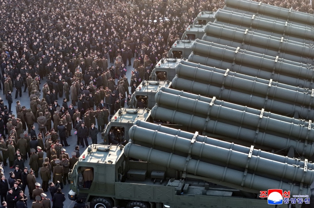 Државните медиуми јавуваат дека севернокорејскиот лидер, „лично контролирајќи“ го возилото, го прегледал оружјето кое било церемонијално поредено во централното градско подрачје.