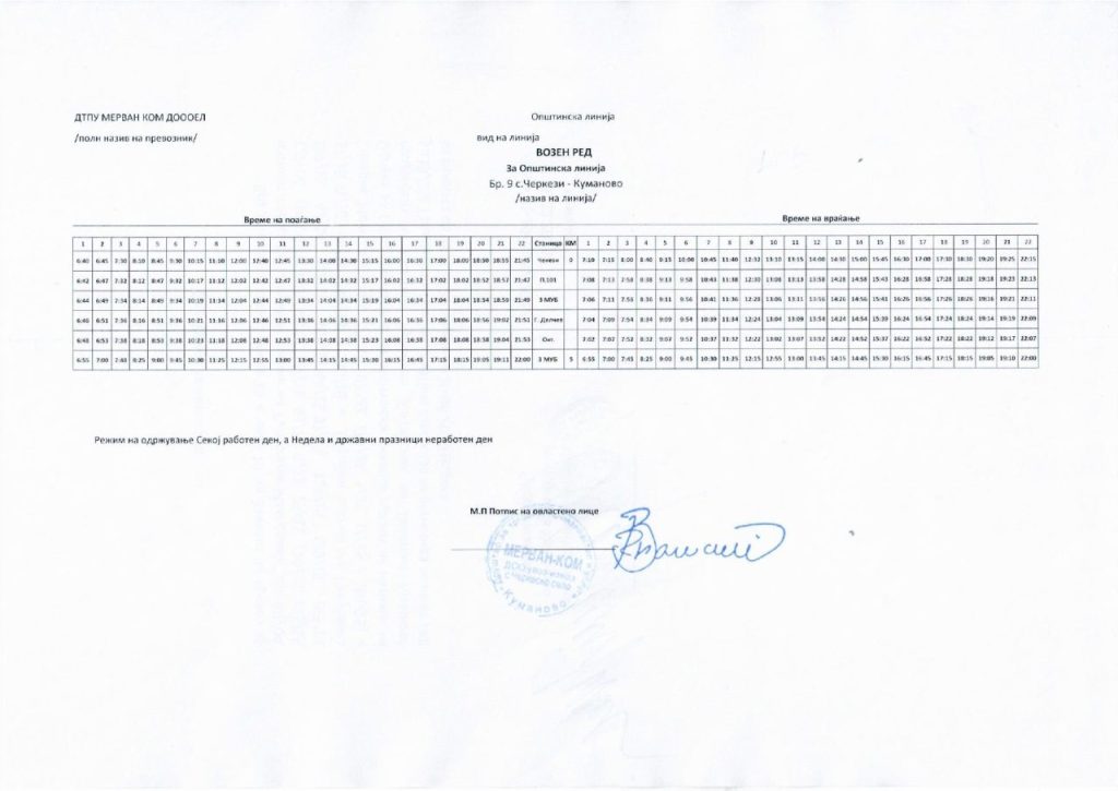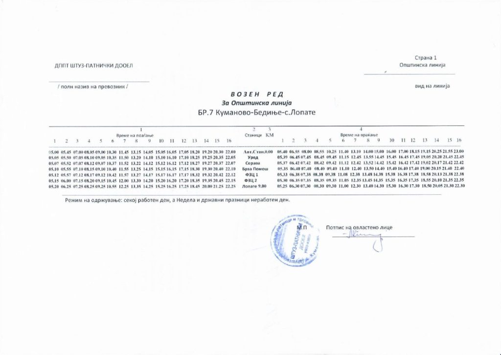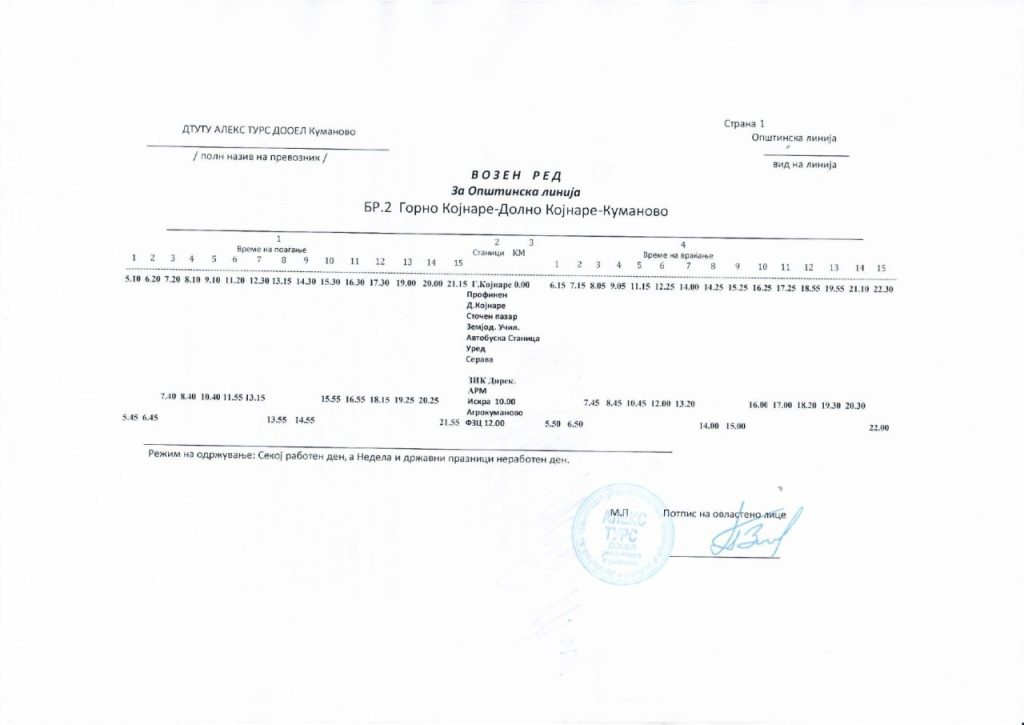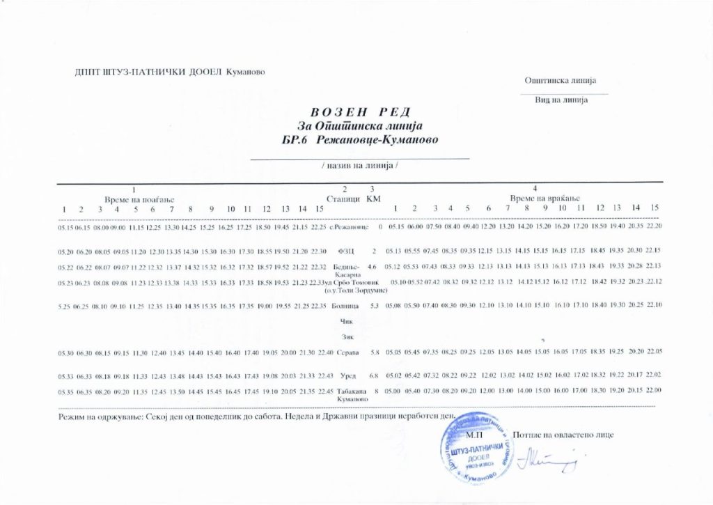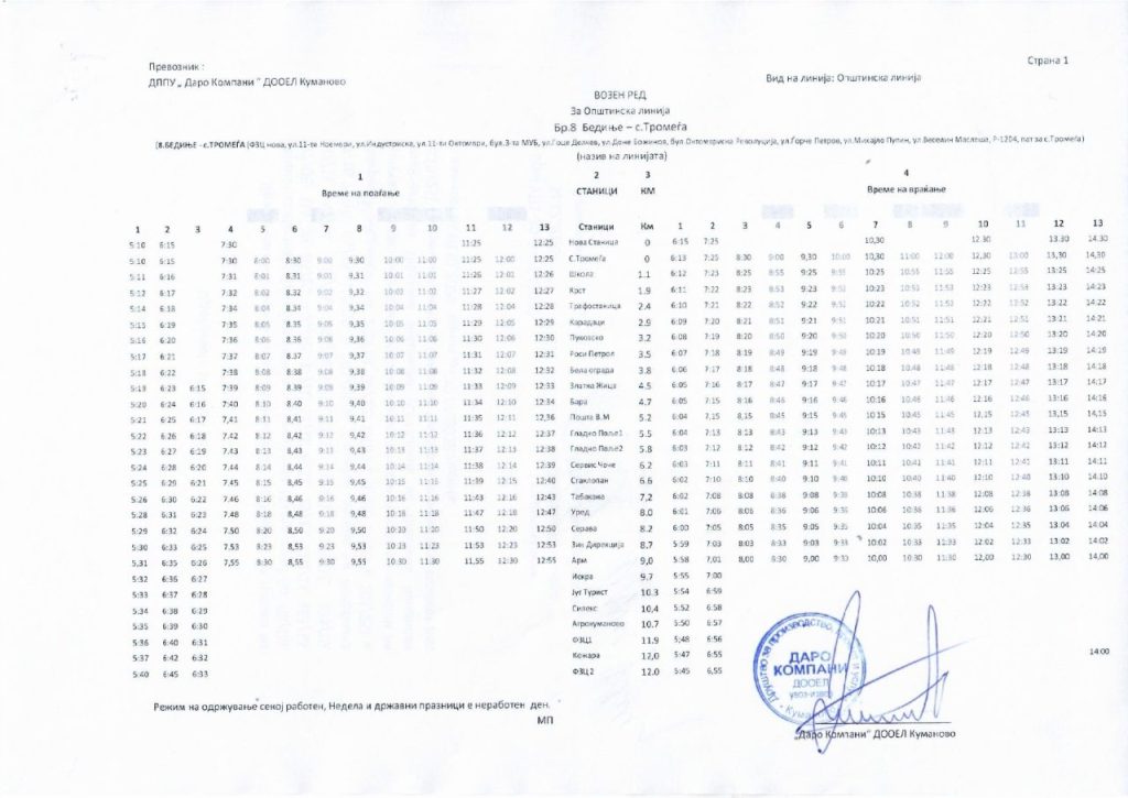 Сподели со своите пријателиАвтобускиот превоз во Куманово е бесплатен и сообраќа на 25 линии од центарот на градот до приградските населби и селата, и обратно. Во продолжение може да го пронајдете возниот ред со сатници на тргнување и пристигнување на автобусите за сите линии: 2026-01-14