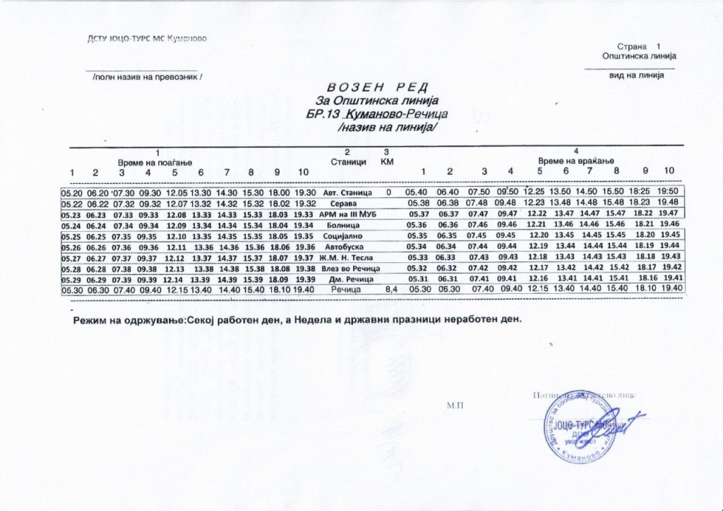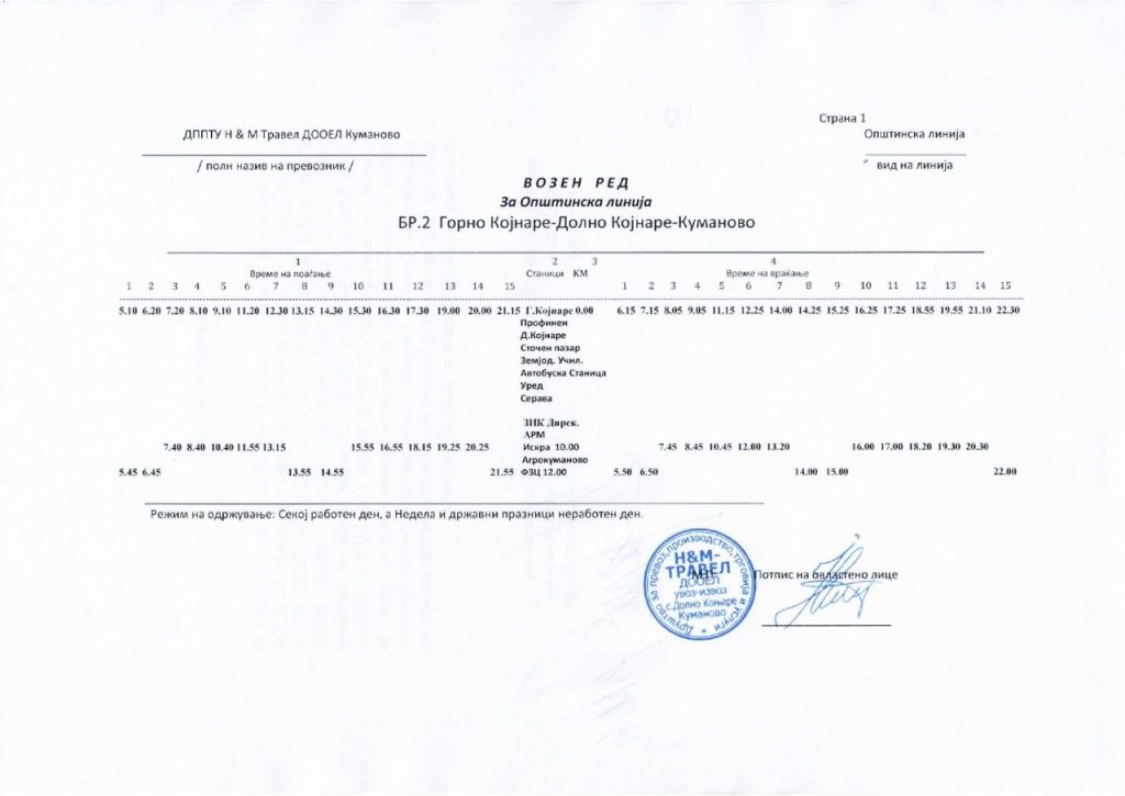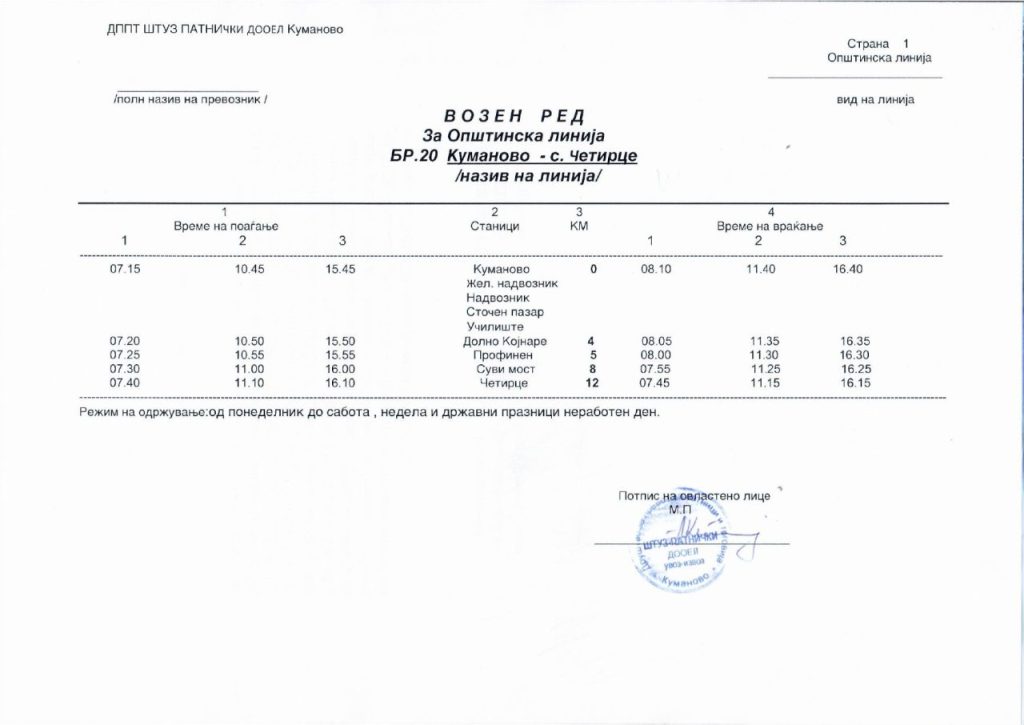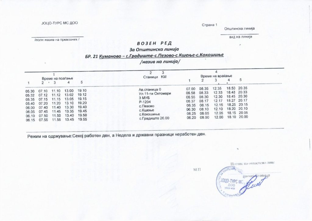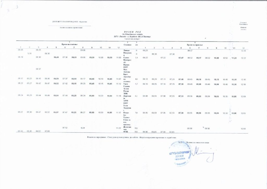 Сподели со своите пријателиАвтобускиот превоз во Куманово е бесплатен и сообраќа на 25 линии од центарот на градот до приградските населби и селата, и обратно. Во продолжение може да го пронајдете возниот ред со сатници на тргнување и пристигнување на автобусите за сите линии: 2026-01-14