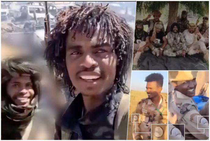 Тој се смее додека ја врти камерата кон себе и своите другари, на кои јасно се видливи ознаките на паравоената група Сили за брза поддршка (RSF):