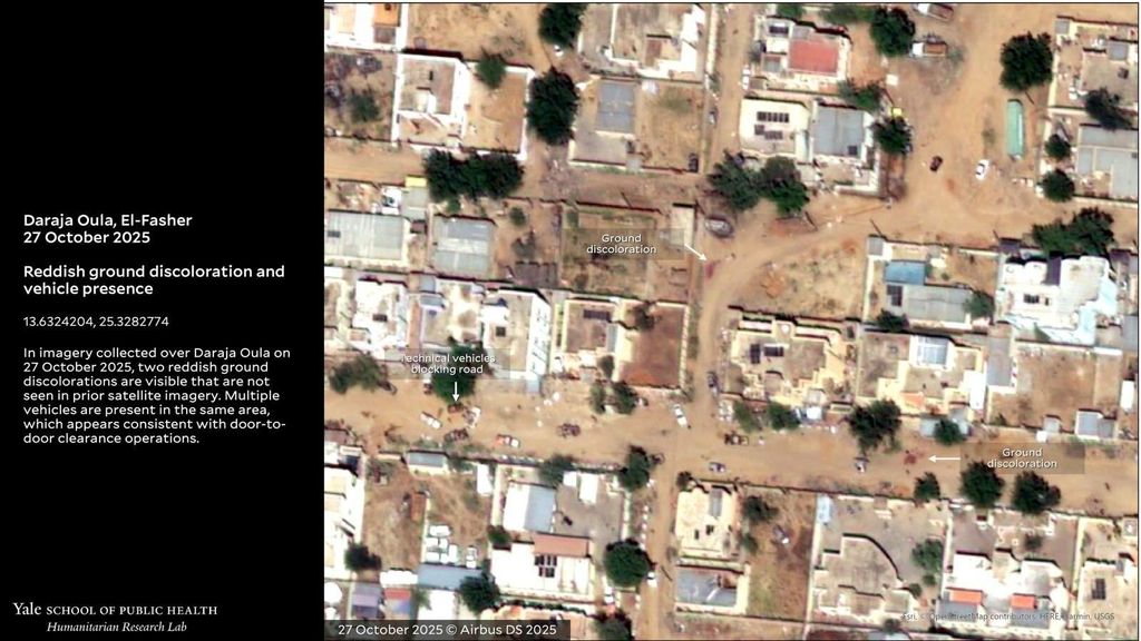 Сателитски снимки од 4 ноември покажуваат дека телата се отстранети од местото на егзекуцијата и дека нови гробови се ископани во близина на детската болница во Ел-Фашер.