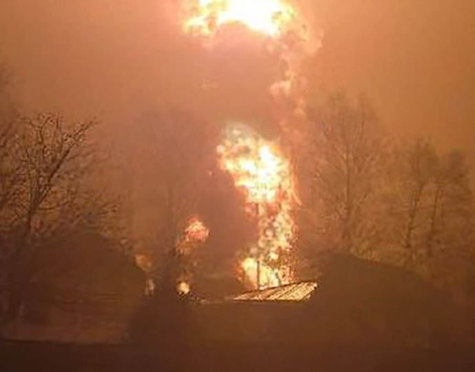 Украинските и руските канали на Телеграм објавуваат снимки на кои се гледа експлозија и пожар во регионот Тамбов.