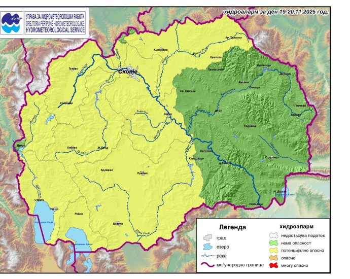 Ваков метео аларм, со порака дека состојбата со водотеците е потенцијално опасна, УХМР издаде за поголемиот дел од државата, додека истокот и југоистокот од земјата засега нема опасност.