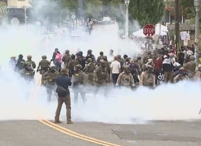 Локалните медиуми објавија дека федералните сили употребиле солзавец и димни бомби за да ги растераат демонстрантите.