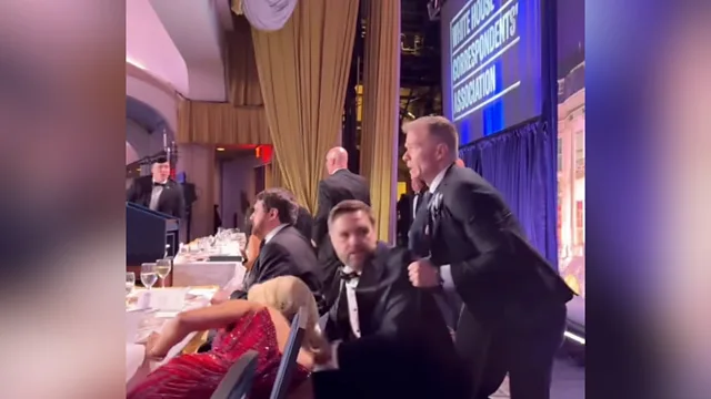 Видеото од хаотичните моменти по инцидентот во саботата вечерта во хотелот Вашингтон Хилтон стана вирално, прикажувајќи гости како се кријат под масите откако одекнаа истрели веднаш по почетокот на годишниот настан.